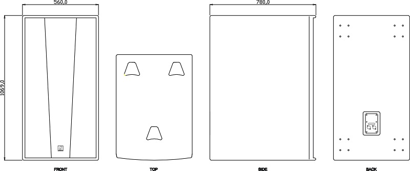 箱體外形 Physical 梯形 箱體材料 Enclosure Material 18/25 厘厚樺木夾板 箱體網(wǎng)面 Enclosure Material 模壓鋼制圓形孔網(wǎng)面,內(nèi)貼專業(yè)防水透氣爆破棉 表面漆 Finish 水性環(huán)保多層耐刮、耐腐蝕、防水灑點油漆 吊裝點 Handing Position ———— 支撐座 Pole Mount ———— |